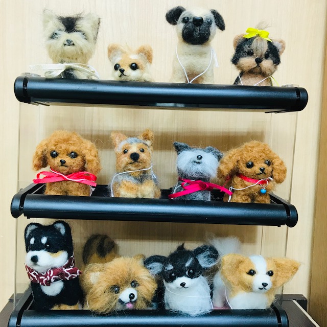 JUGEMテーマ:ハンドメイド雑貨のお店 JUGEMテーマ:練馬区 こんにちは! 今日は羊毛フェルト作家のゆいまーるさんがゴソっと納品して下さいましたので既に店内に有った作品とサイズが近い子たちを集めて整列させてみました(^^)/ はい!カワイイ〜〜〜(*^-^*) チワワ、ヨーキー、パグ、トイプー、ミニチュアシュナウザー、柴犬、ポメラニアン、パピヨンなどなど。 どれも高さ3〜5cmくらいの子たちばかりを一堂に集め記念撮影!犬好きさんなら「ごと欲しい!!」ってなるはず。 現在、ショウー...