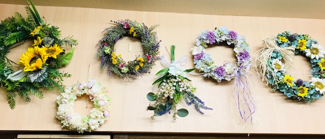JUGEMテーマ:ハンドメイド雑貨のお店 JUGEMテーマ:練馬区 こんばんは! 今日は久々に雨も降らず動き易かったですね(^^) さて、現在chicoowaの天井とBOXの間の壁にはたくさんのリースやスワッグが飾られています。 特に両端は夏の代名詞ヒマワリを入れ込んだ元気の出るデザインになってます。アーティフィシャルフラワーなので劣化はしませんから季節に合わせて飾ったりしまったりできるので便利です!(^^)! BOXに入っていないので売り物ではなくディスプレイと思ってしまうお客さんもいらっしゃ...