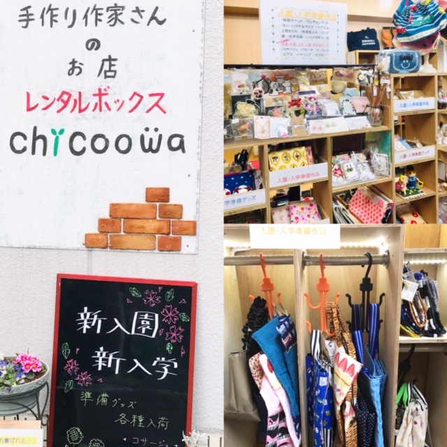 JUGEMテーマ:ハンドメイド雑貨のお店 JUGEMテーマ:練馬区 昨日でバレンタインも終わりましたので特設コーナーは「入園・入学準備コーナー」に模様替え!! 今春より保育園・幼稚園・小学校へ入園、入学するお子さんをお持ちのママさん!説明会でもらったプリントを見て準備する物の多さにゾっとしてませんか? これから布を買いに走り、押し入れからミシンを引っ張り出して・・・そんな時間は無い!!って忙しいママさんも多いはず。 是非、chicoowaを覗いてみて下さい。 お弁当袋・コップ袋・ラン...