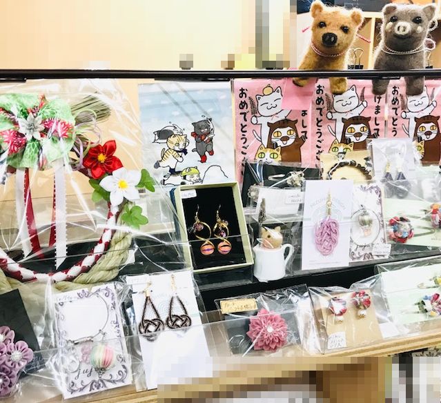 JUGEMテーマ:ハンドメイド雑貨のお店 JUGEMテーマ:練馬区 昨日の閉店後、Xmasの飾りつけと特設コーナーの作品入替を実施し、画像の感じにしてみました(^^) テーマは「お正月&成人式」 という事で一気に「洋」から「和」へシフトしました! 画像で確認できる作品を少しご紹介しますと、まず右上にイノシシの親子が!!羊毛フェルトで可愛く作られた来年の干支です。画像中央部にもイノシシ(ウリ坊)のメモスタンドがいるのですが確認できますか?こちらも羊毛フェルトですが作家さんが違うので感...