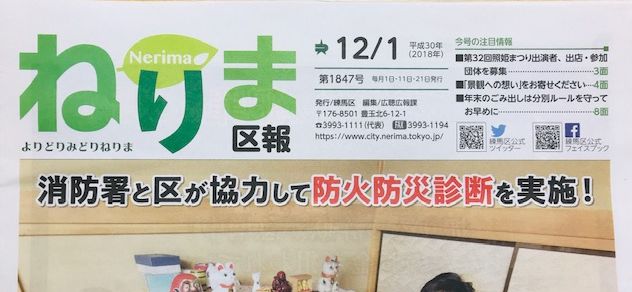 JUGEMテーマ:練馬区 え〜区報掲載と言いましても何か区の事業に貢献したとか、そんな事ではなく単なる広告です(^^; やはり練馬区民の皆さんに、もっとchicoowaの存在を知っていただきたくて今回、区報掲載を試みました。 一口に練馬区と言っても広いですから、当店の存在をご存知ない方もまだまだいらっしゃるはず。 新しいお客さんや作家さんとの出会いを期待しながら12/1を待ちたいと思います。 そんな事もあり12/1は平日同様11時オープンにしますので是非お越し下さい(*^-^*) さて、12月は新...