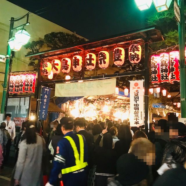 昨夜は閉店後に練馬鳳神社の酉の市に行って来ました。 昨日は二の酉でしたがかなり混んでました。 神社の場所が歓楽街の中という事も有り、食事に来る人、飲みに来る人も普通にイッパイいる中、各店舗が狭い道路の両脇に店頭で飲食物を売っていたり露店が出店していたりで歩行困難になるほどの大賑わいでした。 参拝に並ぶ人たちも駅の方から長蛇の列で初詣を思わせる人出でした!! 夜の神社って少し神秘的な雰囲気があって良いのですが昨夜はとてもそんな感じではなく、境内に並ぶ熊手を販売する露店...