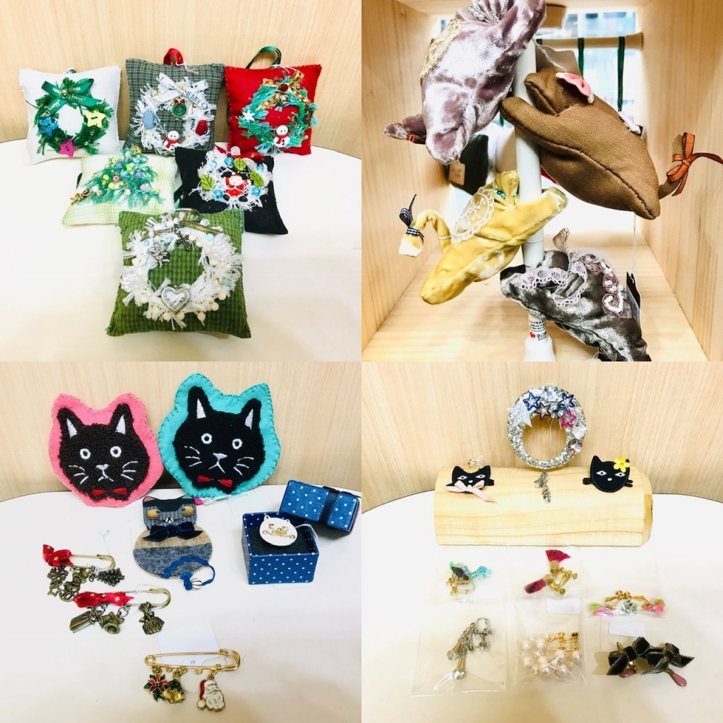 JUGEMテーマ:ハンドメイド雑貨のお店 JUGEMテーマ:練馬区 久々のPICK UP ARTISTはアクセサリー作家のRepoYさん(^^)/ 今回は既存展示中の作品を8割くらい入れ替えて売り場をXmas仕様にしていただきました! 画像上段左側はオーナメントとしてツリーに飾っても良し!ドアノブから下げても良し!の今の時期に欲しくなる1品。その隣は洗濯ばさみを仕込んだネコです。カーテンを束ねた時などに使うと便利で可愛いです(^^)下段左側のネコちゃんは中にメジャーが仕込んであるカワイイ作品。手前にはク...