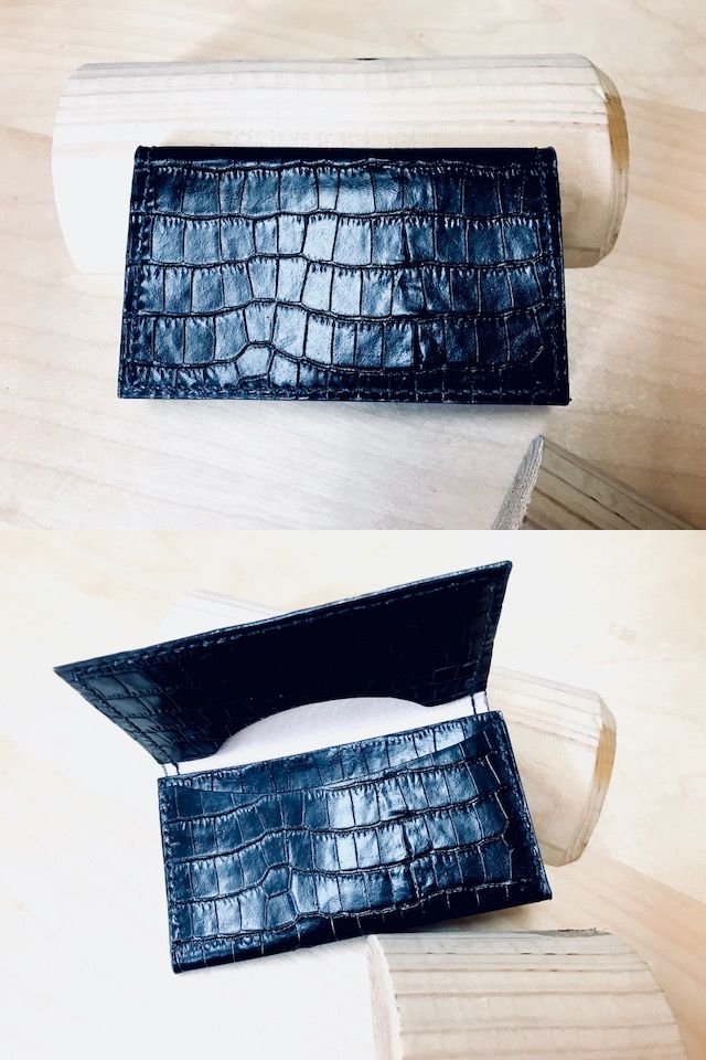 JUGEMテーマ:ハンドメイド雑貨のお店 JUGEMテーマ:練馬区 昨日、裁断後の画像でご紹介したクロコ(型押し)の名刺入れが完成しました(^^)/ やはり見た目には重厚感と言うか雰囲気が出ているのですが、こちらは合皮なので 本革に比べれば耐久性は落ちる事と使い込んでも味は出てこないです。 かと言って本物のクロコの名刺入れなど買ったら数万円はしますから、なかなか庶民 には手の出しづらい代物ですね。 前回作成のロロマレザー(茶)との相違点は昨日も書いた通りメインポケットの手前に サブポ...