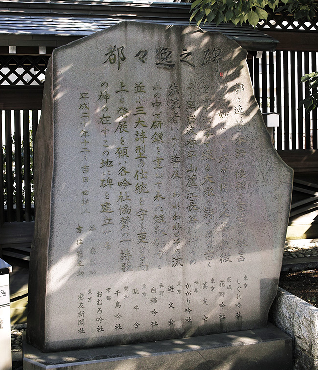 JUGEMテーマ:東京散歩 前回の記事[浅草弁天山の[都々逸塚]を訪ねる]に続いて、今回は[湯島天神の[都々逸之碑]を訪ねる]である。前回も書いたが、昨年の5月の終わりに撮った写真をもとに書いた記事である。 冒頭の写真の[都々逸之碑]は、湯島天神の本殿の東に立っている。写真では表面に刻まれた文字が読みにくいので転写する。 都々逸は日本語の優雅さ言葉の綾言回しの妙などを巧みに用いて人生の機微を二十六字で綴る大衆の詩である古くより黒岩涙香平山蘆江長谷川伸...
