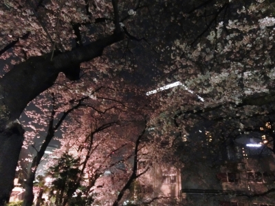 JUGEMテーマ:東京散歩 本当は、ゴザとか敷いてさっ。。。 のんびり花見したいよなー。 取りあえず、ながら花見で。 誰もいないし、夜中だし、幻想的! おっと、終電終電。。。