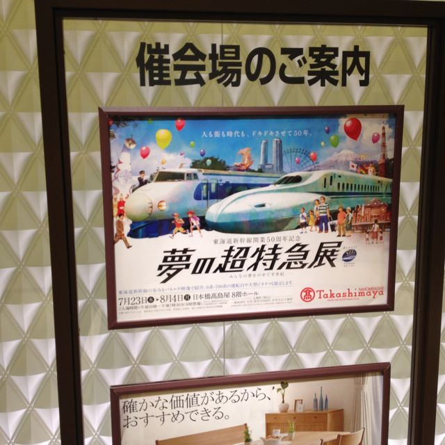 JUGEMテーマ:東京散歩 8/4まで日本橋高島屋で開催されていた 東海道新幹線開業50周年記念 夢の超特急展 歴代の新幹線も 懐かしさと夢 その時代を振り返り 時代背景が映り込んだ 新幹線は憧れの「夢の超特急」 東京から大阪までのジオラマがリアルに