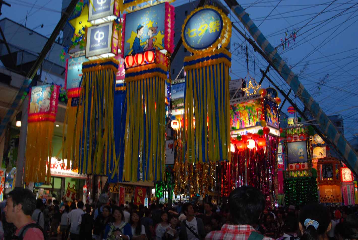 JUGEMテーマ:湘南 今日は娘夫婦と孫で七夕祭りへ行きました。 飾りを見るというより、屋台廻りですかね。生焼けのたこ焼きに始まり 鳥の皮焼き、揚げじゃがバター、綿あめ・・・・ちょっと胃がもたれました。 小雨が降っていましたが、土曜日ということもあって混雑してましたね。 孫がスイミング帰りとあって、浴衣姿じゃなくて爺としては残念かな。