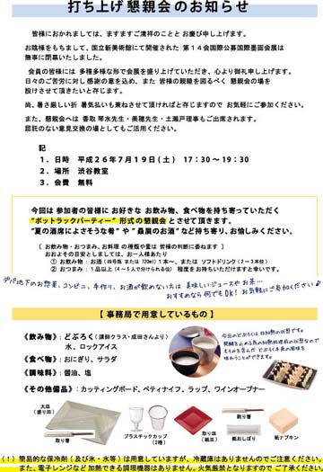 JUGEMテーマ:イベント情報JUGEMテーマ:日記・一般JUGEMテーマ:渋谷 〜今回は“ポットラックパーティー”形式の気軽な懇親会です〜※クリックで拡大、PDFが開きます。国際墨画会