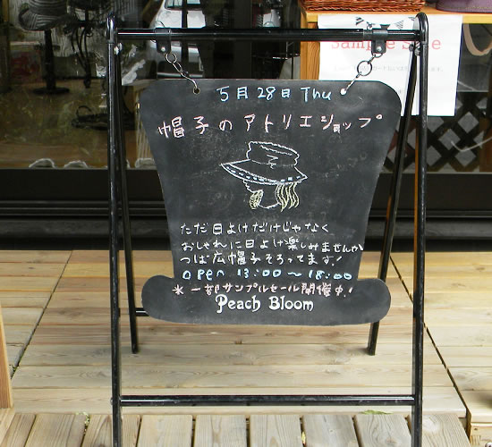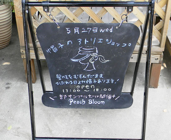 「5/26 火曜日 アトリエショップ営業日です」 本日アトリエショップの営業日です。 外で黒板を書いていると(本日よりキャぺリーヌ着用) 暑いというか痛い! 黒板が暑くて手をのせるのも痛い!くらい暑い日です。 そんな本日もアトリエショップ営業日です。 13時から18時までの営業となります。 アトリエではオーダーも承ります。 サイズなどでお困りのみなさんもお気軽にご相談下さい。 本日は黒板書く時にかぶっているキャぺリーヌ(つば広)は こちら。 かなーり横もガードされるの...