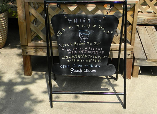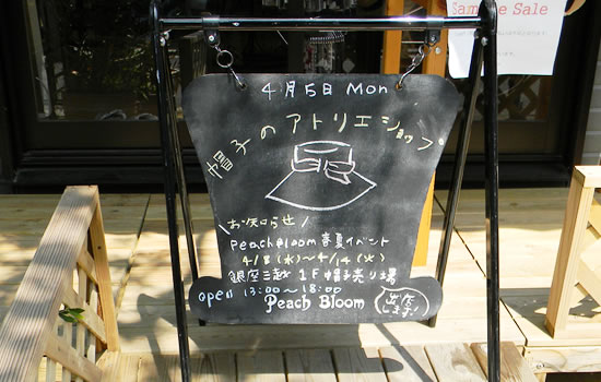 「4/7 火曜日 アトリエショップ営業日です」 本日アトリエショップの営業日です。 昨日のブログや◆◆◆ イベント速報 ◆◆◆ページからもお知らせしていますが http://note.peachbloom.jp/?cid=16 明日4月8日(水)〜4月14日(火) までピーチブルーム帽子フェア が始まります。 場所は銀座三越 1F 帽子売り場 です。こちらの営業時間は 10:30〜20:00 となります。 期間中はアトリエショップの営業日時がかわる事もあります。 ご了承下さい。 facebookからのチェックもよろしくお願いします。 &nbs...