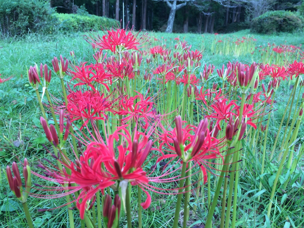 今日の昭和の森は曇っています。朝方は晴れていました。風は少し。徐々に蒸し暑くなってきました。 9月26日は彼岸明けです。やっとこさ彼岸花が咲き始めました。ここ数週間気温が高かったので咲くのが遅くなったのでしょうか。ぎりぎりセーフです。