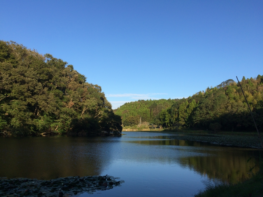 今日の昭和の森は晴れています。風は少し、まだ暑いです。しかし朝夕は気温が下がります。 初秋の澄んだ空気の中、朝陽を浴びる下タ田池です。