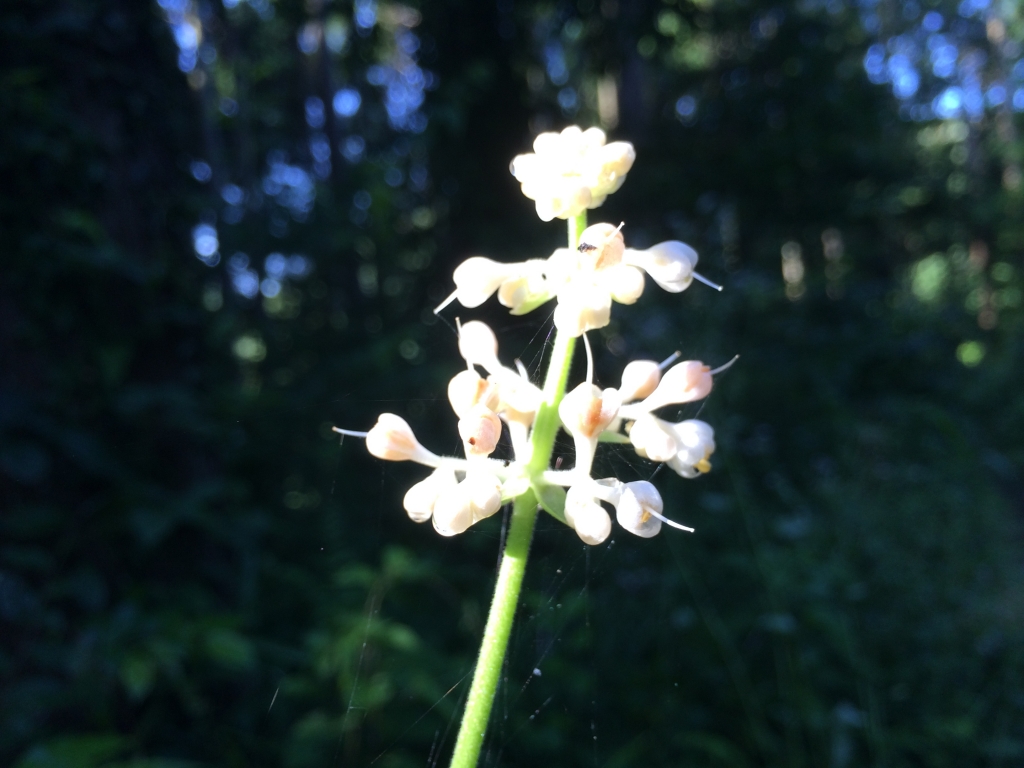 今日の昭和の森は天気が不安定です。朝方は雨がザーザー降りましたが、急速に晴れてきました。程々の蒸し暑さです。台風の進路次第では天気が急変するのでお出かけの際はご注意ください。 夏の陽を浴びるヤブミョウガです。少し前から咲いているのですが、紹介が遅くなりました。ヤブミョウガは暗い林間で多く見られます。小粒の白い花で涼しげです。今ではすっかり種子が膨らんで丸くなってきました。