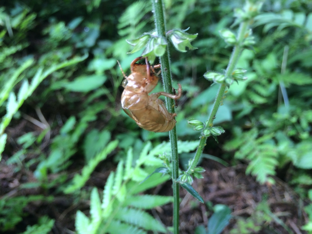 今日の昭和の森は曇り時々晴れです。風は少し、とても蒸し暑いです。関東地方は梅雨明けしたと「思われる」そうです。 ニイニイゼミでしょうか、セミの抜け殻です。「ジー」と抑揚なく鳴いています。聴いているだけで暑苦しいですね。早朝と夕方のヒグラシの鳴き声は、風情があります。