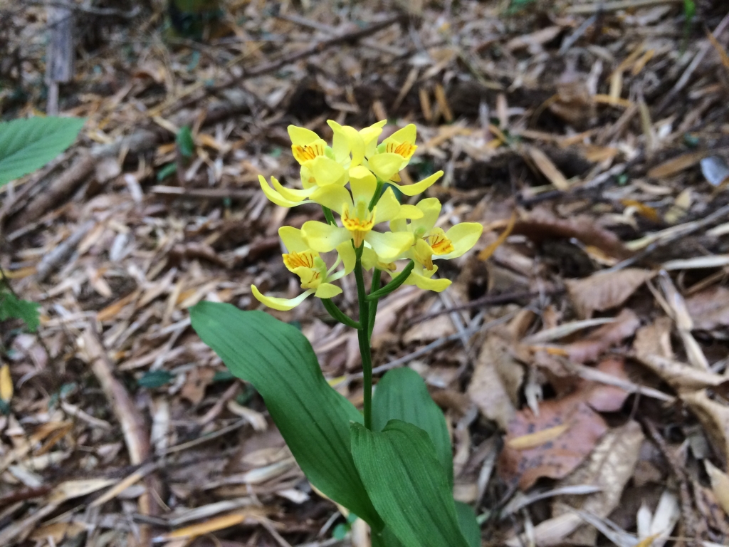 今日の昭和の森は曇っています。風が吹いています。気温が少し高く湿度も高いようです。 キンランが咲いています。暗い林間を歩いていると、きらりと光る黄色い花にハッとします。キンランは、環境省の絶滅危惧II類に指定されている希少な植物です。昭和の森ではあちこちで見かけますが、そっと眺めるだけにしましょう。