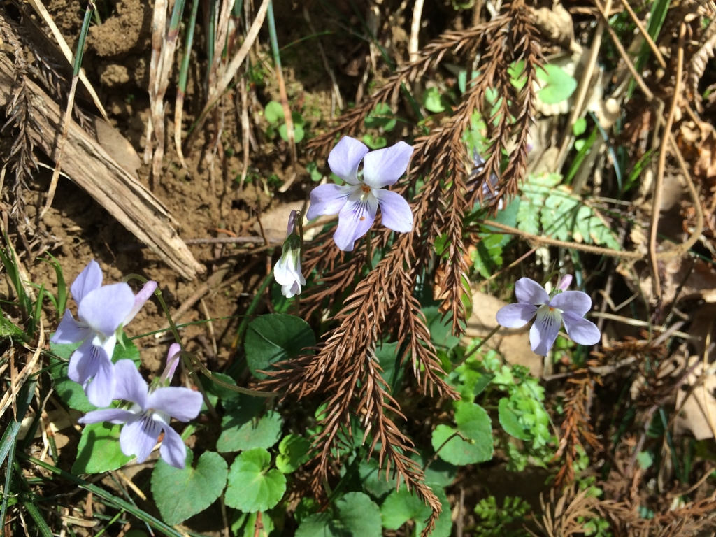 今日の昭和の森は晴れています。風は少し、暖かです。 陽を浴びてタチツボスミレが咲いています。青と言うか薄紫と言うか、小さな花が可憐です。三寒四温、本格的な春が近づいています。