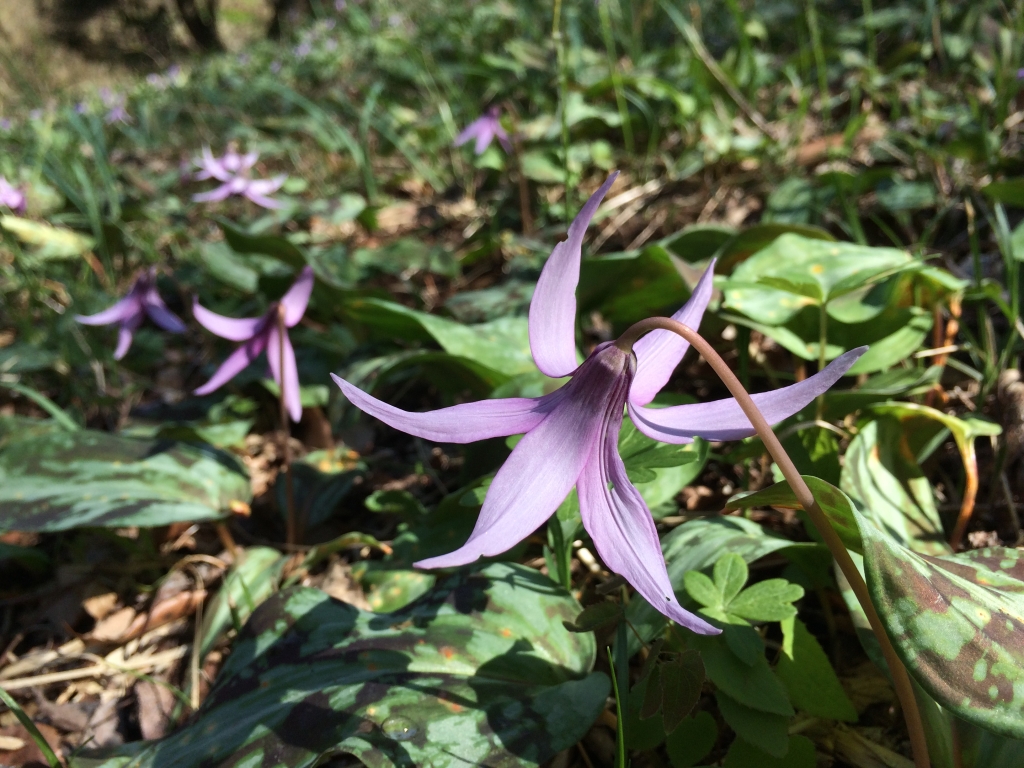 今日の昭和の森は晴れています。風は弱いですが冷たいです。早朝は気温が下がり、氷が張っていました。 この時期、桜の花に目を奪われがちですが、カタクリもまだまだ咲いています。見に来てください。気温のせいか日陰の個体は花びらを閉じていました。