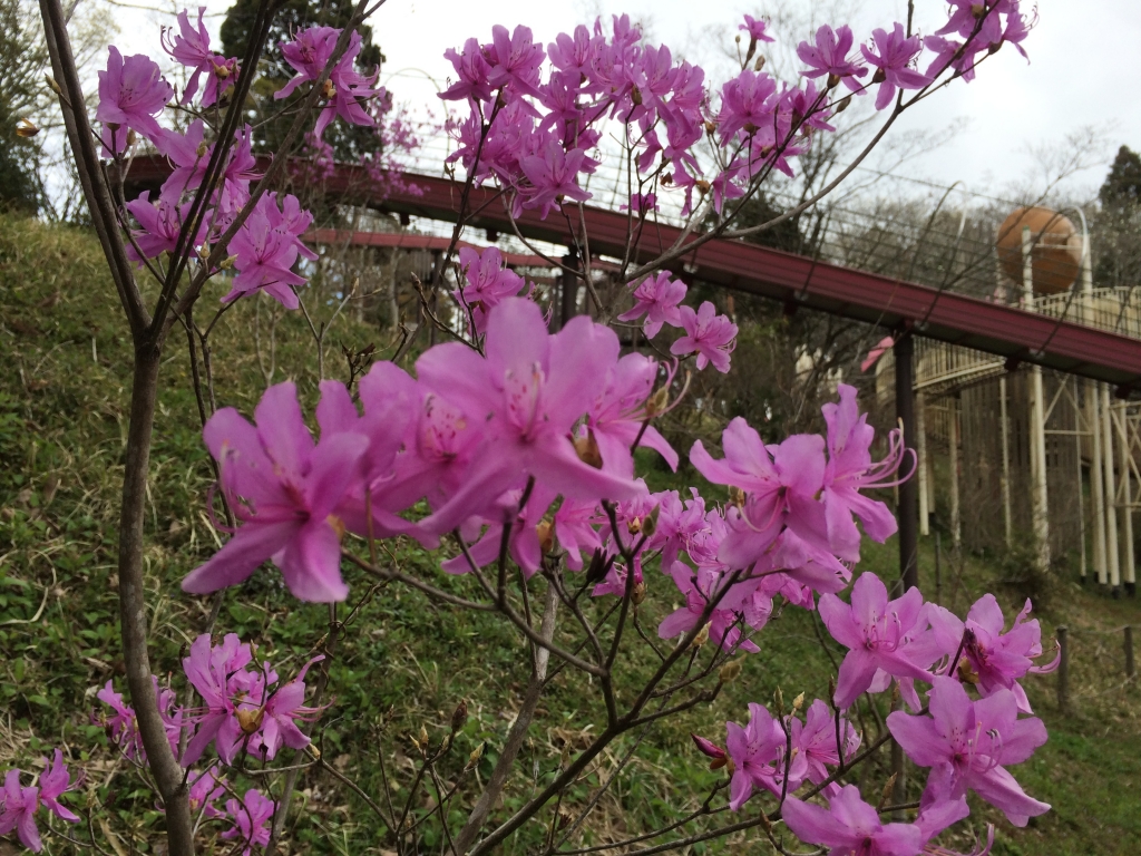 今日の昭和の森は晴れています。穏やかでとても暖かです。昨日の強風が嘘のようです。 昭和の森の園内は春の花々でいっぱいです。南側の斜面では、ツツジも咲いています。紅色で鮮やかです。