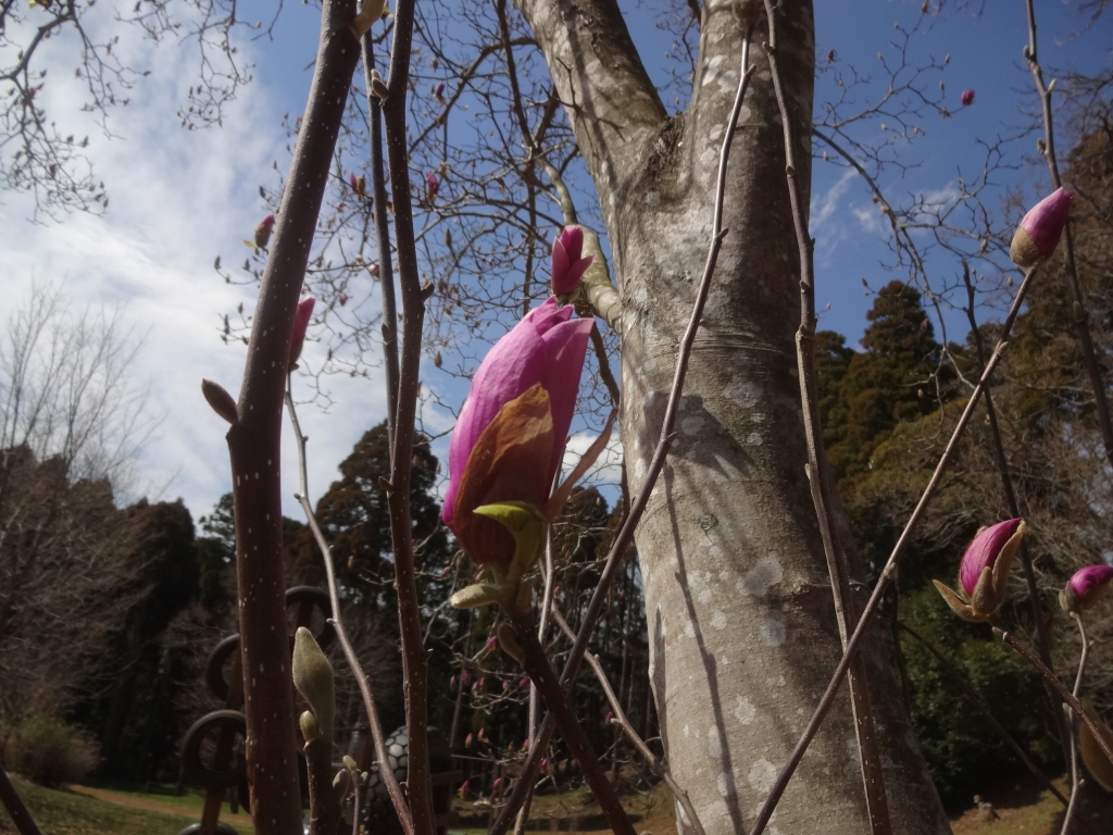 今日の昭和の森は晴れています。昨日よりさらに暖かです。一気に春の様相です。しかし、週末にはまた寒くなりそうです。 ハクモクレンに続いて紅いモクレンが咲き始めました。野山が賑やかになってきました。
