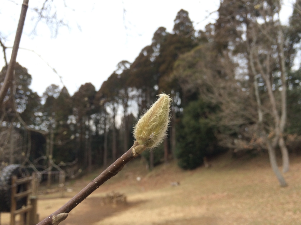今日の昭和の森は曇っています。風は弱いですが、寒い日です。 しかし、春はもうすぐ。杉花粉も飛び始めましたが、他の木も春の準備中です。多くの木が蕾や新芽を付けています。