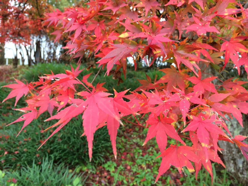 今日の昭和の森は曇りで、時々小雨も降りました。寒い日でした。 そんな曇り空でもモミジの紅い葉が鮮やかです。地面に落ちた葉もきれいです。明日から3連休の方も多いでしょう。昭和の森で紅葉狩りはいかがでしょうか。