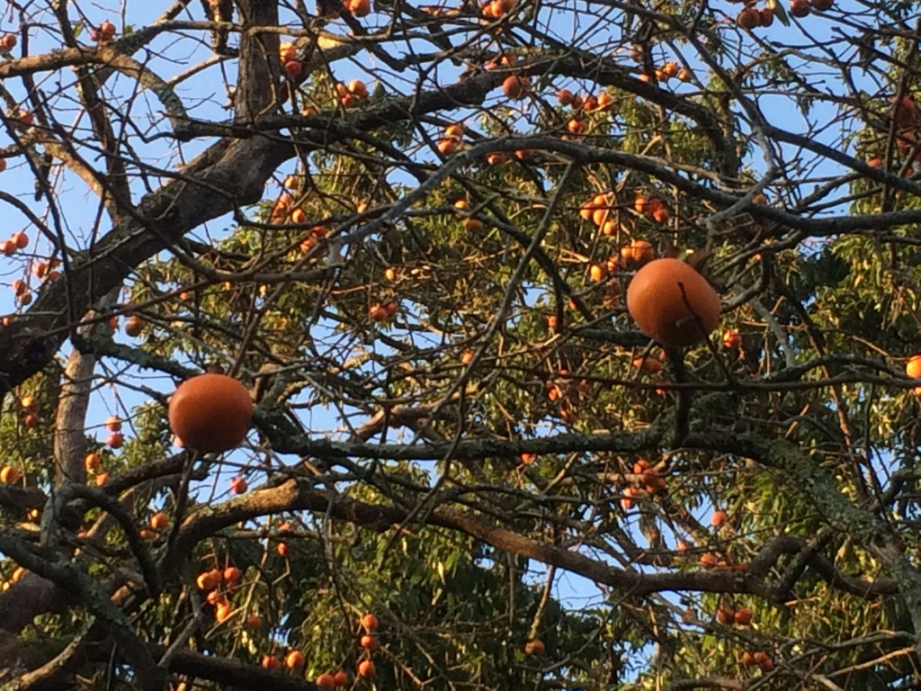 今日の昭和の森は快晴です。風が吹いています。秋らしい気候です。 秋と言えば果物。柿の実が生っています。昭和の森の園内には、所々に柿の木があります。木の実が好きな野鳥は、どこにあるか知っているのでしょうね。