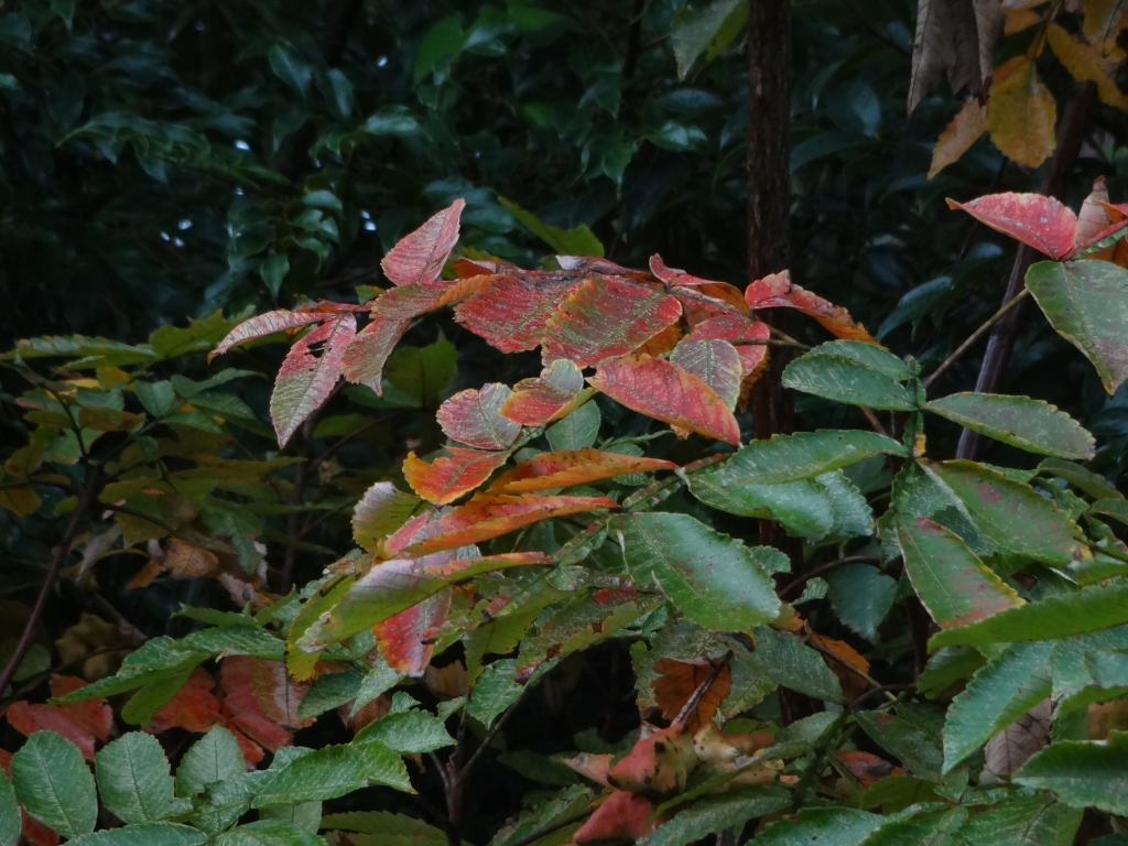 今日の昭和の森は曇っています。朝方まで降った雨は一旦上がったのですが、まだ不安定です。午後遅くからは晴れる予報ですが。 昭和和の森の紅葉は少しづつ進んでいます。紅葉し葉を散らすのは、桜、ケヤキやミズキが早いですね。それからイチョウにカエデ。地味ですが、ヌルデも紅葉してきました。今年は暖冬の予報なので、房総半島の紅葉の見頃はいつもより遅くなりそうです。