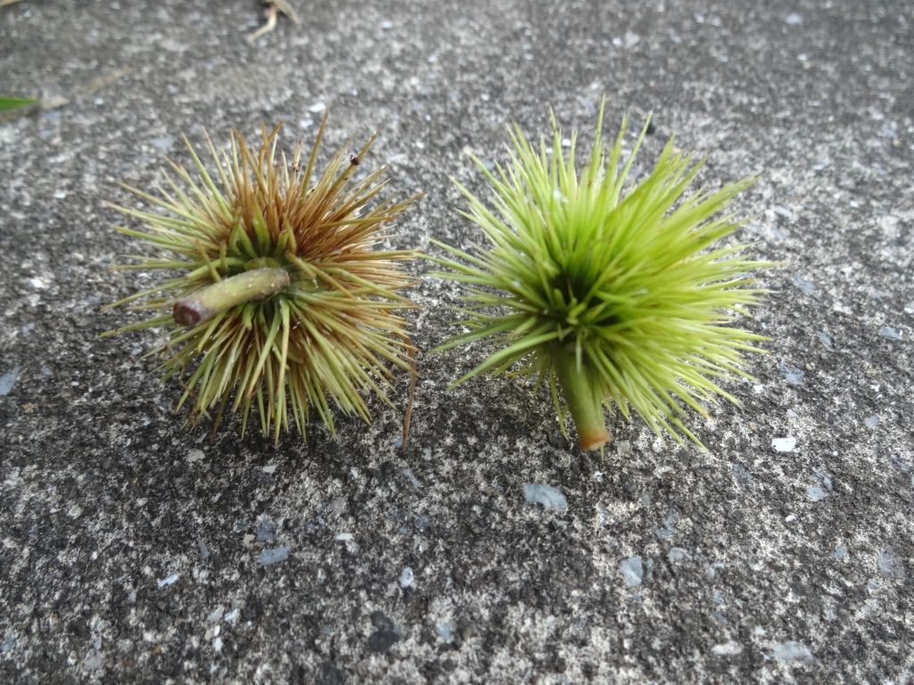 今日の昭和の森は晴れています。風は殆ど無くとても暑いです。 先日の台風で栗の実もあちこちに落ちています。まだ成長途中での落下は無念です。