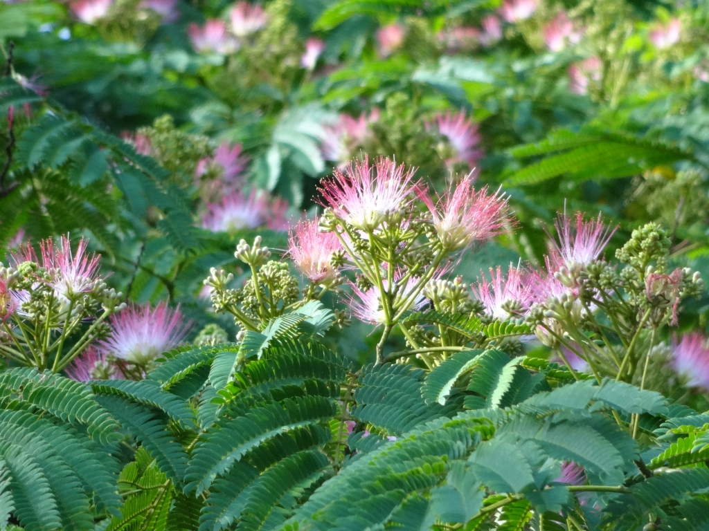 今日の昭和の森は晴れています。穏やかで薄雲が浮かんでいます。今日も暑くなりそうです。 ネムノキの花が咲いています。淡紅色の長いおしべで繊細な美しさです。初夏の可憐な花です。