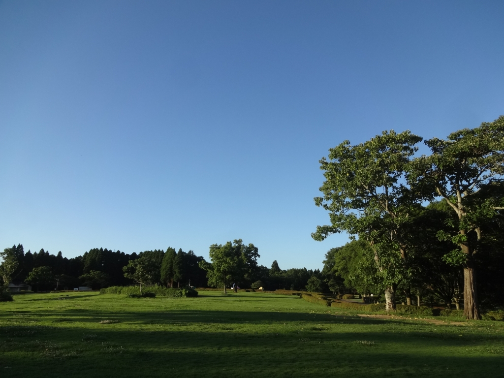 今日の昭和の森は晴れています。少し風が吹いていますが、朝から暑いです。 そうです、梅雨が明けたのです。観測史上最速の梅雨明けだそうです。早朝は、太陽の広場の芝生の上に木の長い影が横たわり、抜けるような青空でした。しかし、上昇気流で午後にはミルキーブルーになるでしょう。