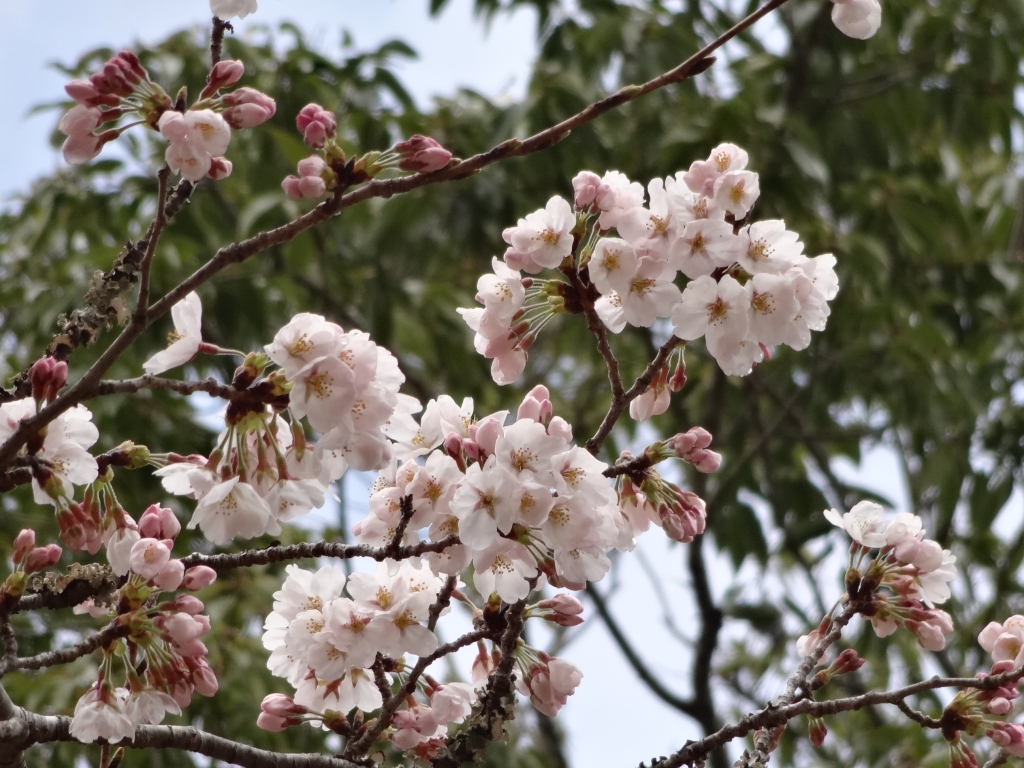 今日の昭和の森は、曇っていましたが、徐々に晴れてきました。雨は2日間よく降りましたが、草木への水分補給になりました。 毎年3月下旬の二つの花見もの、桜とカタクリが咲き始めました。桜は、園内の早い個体はいくつか咲いていますが、お花見広場の個体は、はちきれんばかりの蕾です。カタクリの開花は、ずいぶんと進みました。しかし、今日は曇りがちなので、花を開いている個体は少ないです。