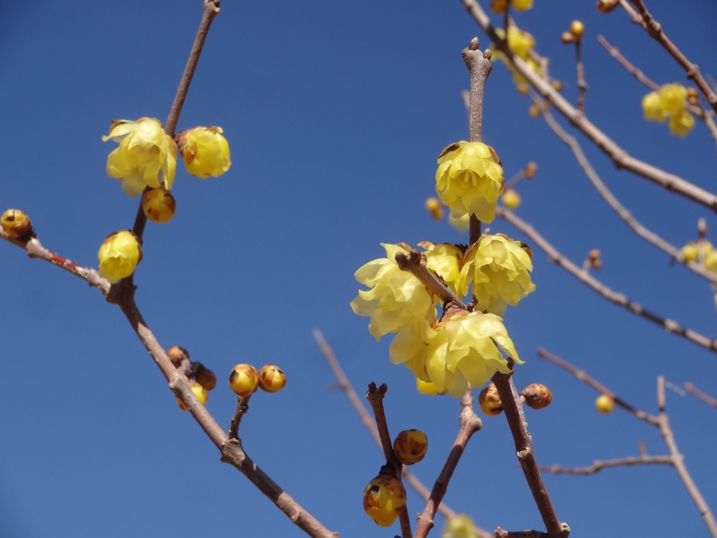 今日の昭和の森は晴れています。雲が浮かんでいます。寒さが幾便和らいだ穏やかな日です。 梅は、ほぼ満開ですが、その脇の花木園ではロウバイが咲いています。黄色の花と青空のコントラストが鮮やかです。ピョンチャン・オリンピックをテレビ観戦するのも楽しいですが、外に出て自然を愛でましょう。