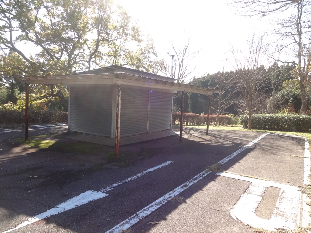 今日の昭和の森は晴れています。雲が少し浮かんでいます。冬らしい寒い日です。風はわずか。 サイクリングコースの途中、展望台近くにシャッターの閉まった小屋があります。なんだと思ますか? 以前は売店だったのです。サイクリングの途中で、ここで一休みして展望台に上がる体裁だったのですね。夏場であれば、ここで冷たいアイスキャンディーを食べられたのです。レジャーが多様化して、昭和の森でサイクリングする家族連れも減りましたが、原点に戻って活性化したいですね。