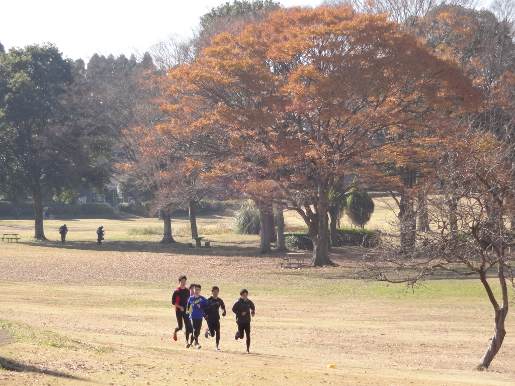 今日の昭和の森は快晴です。朝方は冷えましたが、陽が昇るにつれ暖かくなってきました。風は殆どありません。 もう12月です。箱根駅伝まであと1か月ない、などとばかり考えていてはいけません。この頃は、若者たちがランニングのトレーニングに訪れています。老いても見てばかりいないで少しは走りましょう。 ただし、もうじきランニング規制エリアが設定されます。芝生保護と混雑時の事故防止のためです。規制エリアは太陽の広場の南側です。