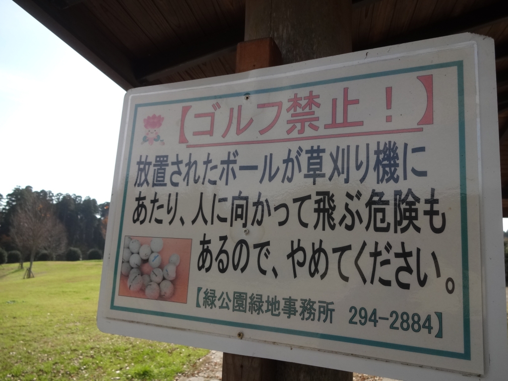 今日の昭和の森は晴れています。雲が少し浮かんでいますが、穏やかです。 昭和の森の南端にある多目的広場にこんな張り紙があります。普段は訪れる人が少ない広場なので、ゴルフ練習をする輩がいるようです。元々、公園での球技は危険ですが、放置されたボールが危害を及ぼすこともあるようです。そんなことをする方はこのブログを見て無いと思いますが、公園内でのゴルフ練習は素振りも含め絶対におやめください。 公園内での犬の放し飼いも同じですが、人が見て無いからと言っての勝手で危険な行いは、いい大人がしては...