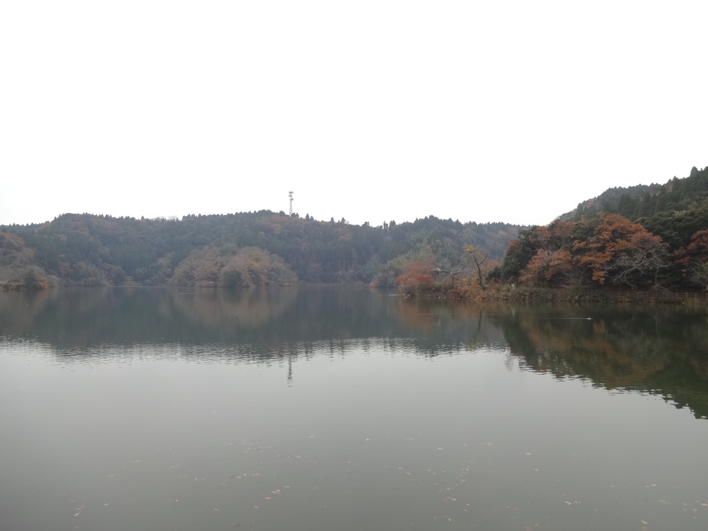 今日の昭和の森は曇っています。穏やかですが、寒い日です。午後遅くには雨が降りそうです。 切通の遊歩道を通って小中池に降りると、展望台から見るのと違って雄大な景色を見ることができます。冬のわびさびを感じる光景です。 小中池は少し複雑な形状をしています。半島や入り江があり、眺める角度によって違った表情を見せます。