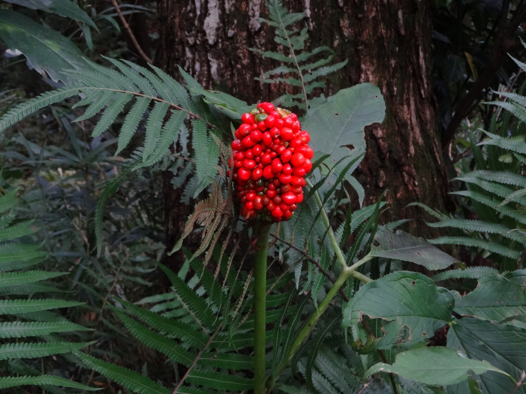 今日の昭和の森は晴れています。 少し冷え込んだ穏やかな朝です。 森の中で、トウモロコシのような赤い実を見かけます。 面白い形態でかつ赤いので、よく目立ちます。 ウラシマソウの実です。 ウラシマソウは、葉や花も変わっており、 自然観察者の目を楽しませてくれます。