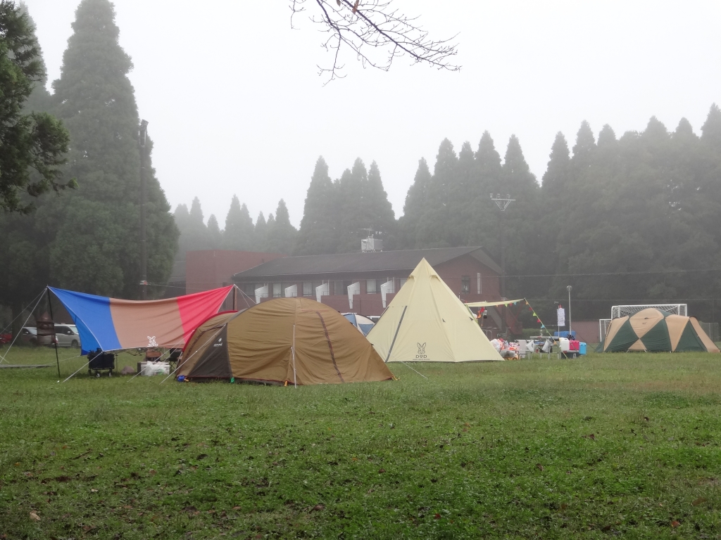 今日の昭和の森は曇っています。 早朝は気温が下がったのでしょう、靄がかかっていました。 これから晴れてきそうです。 今週末は3連休。 天気はぱっとしないのですが、過ごしやすいいい気候です。 フォレストビレッジのキャンプ場は大賑わいです。 暑くも寒くもないので快適です。 大人も子供たちも秋を見つけたでしょうか。