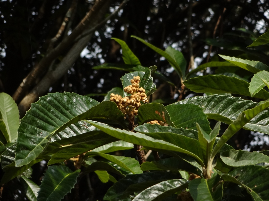 今日の昭和の森は曇っています。 朝方は晴れていたのですが、 上昇気流もあり雲に覆われてきました。 今日も蒸し暑い日です。 ビワの花が咲いています。 しかし、実をつけるのはずっと先なのです。 ビワは、秋に花を咲かせ、次年の夏前にやっと実になります。 お楽しみ(実)は来年の夏です。 おいしくなるには時間がかかります。