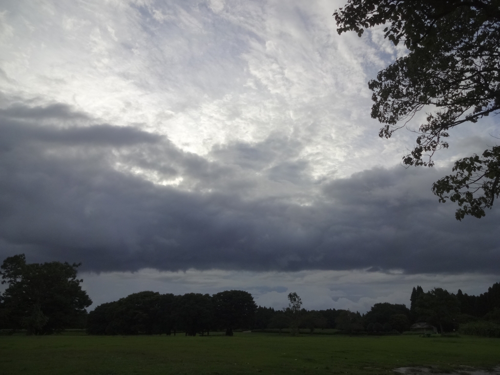 今日の昭和の森は、曇時々雨です。 昨夜の雨は早朝までに止んだのですが、 またポツリポツリと降ってきました。 9月は天気が変わりやすいのです。 低い雨雲が北東の方向に流れていくのが見えました。 その雲の上に太陽が出ようとしていました。 そして短い時間、日が差しました。 雲の流れを見るのは飽きないですね。 首がつかれますが。