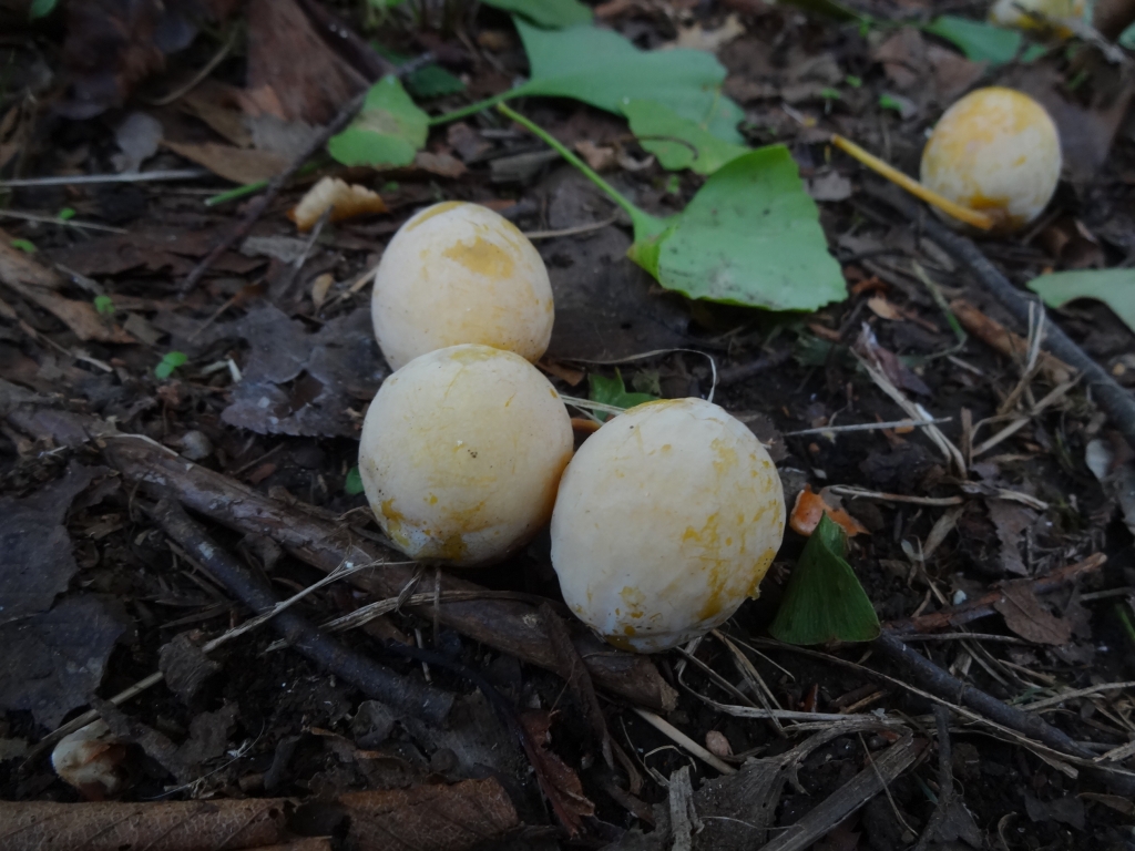 今日の昭和の森は曇っています。 淡く陽が差すこともあります。暑いです。 先日の台風でギンナンの実がたくさん落ちています。 そのままだったらいいのですが、 踏みつけられて 何とも言えない香ばしい?匂いが漂っています。