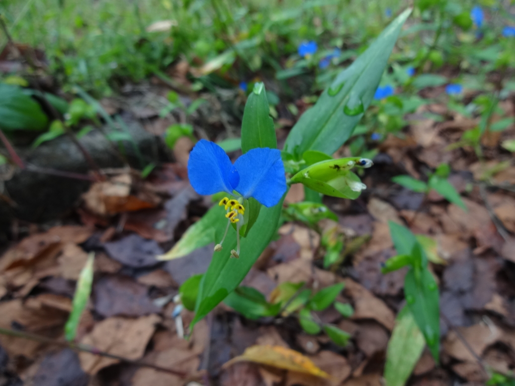 今日の昭和の森は曇っています。 穏やかな朝です。 午後には晴れてきそうです。 ツユクサがあちこちに咲いています。 青い花弁と黄色の雄しべの対比が鮮やかです。 しかし、朝露のように昼頃には萎んでしまいます。 英名は、「Dayflower」。 名のとおり儚い花です。