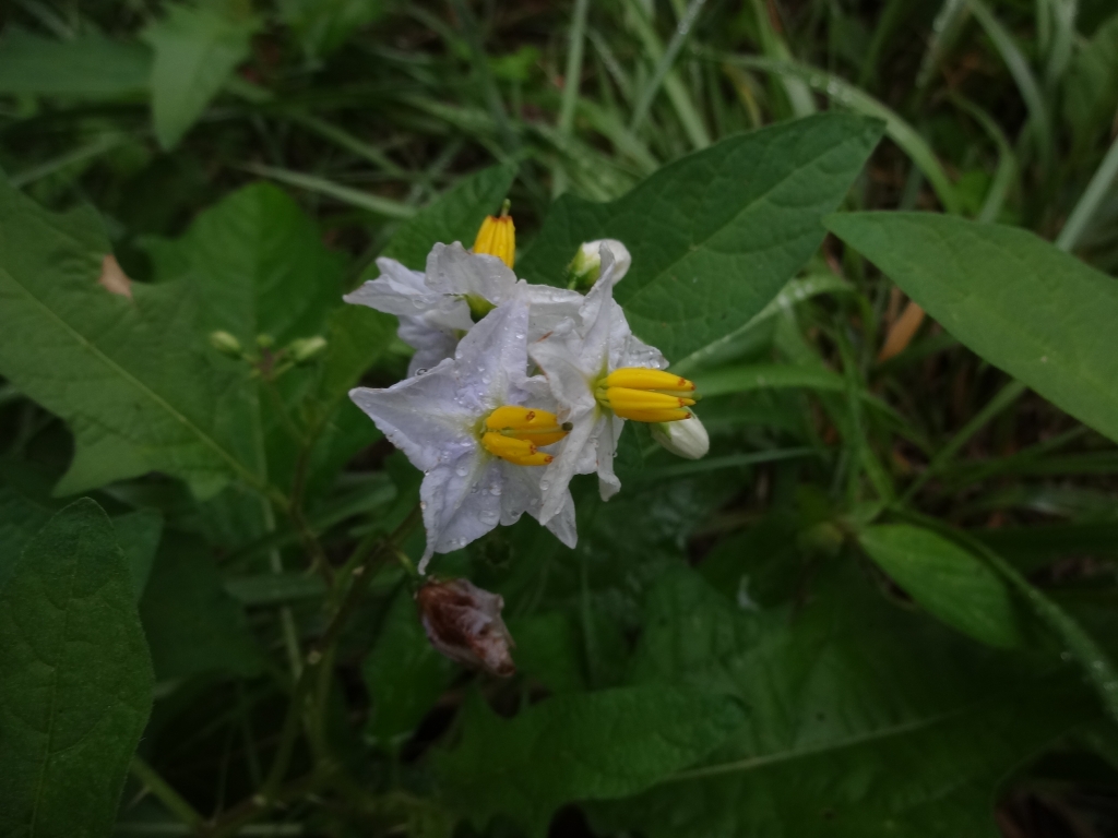 今日の昭和の森は曇っています。 風が吹いています。 適温なのですが、暑さに慣れた体には寒くさえ感じます。 6月頃から咲いているワルナスビですが、 数は少ないものの、まだ咲いています。 雨に濡れて可憐に見えます。
