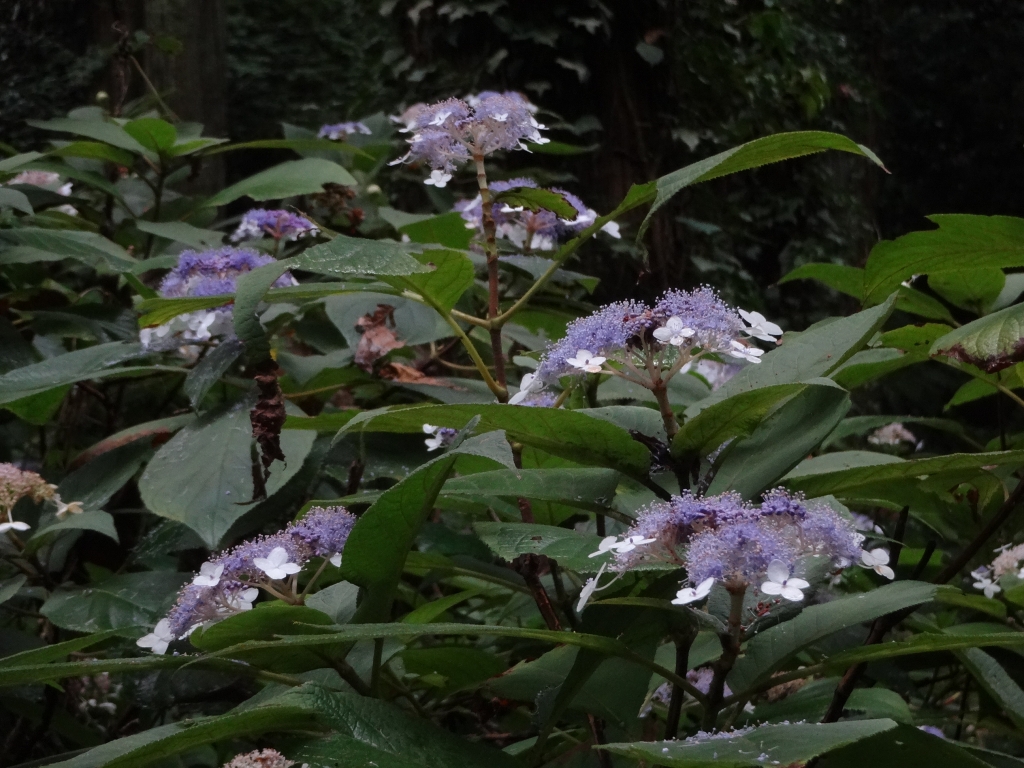 今日の昭和の森は曇っています。 じめじめした日が続きます。 しかし心だけはカラッと行きたいですね。 9月に入って少し経ちますが、 モミジ谷の下では、ガクアジサイが咲いています。 冷陰な場所なので長持ちしているのでしょうか。 この気候では違和感がありません。