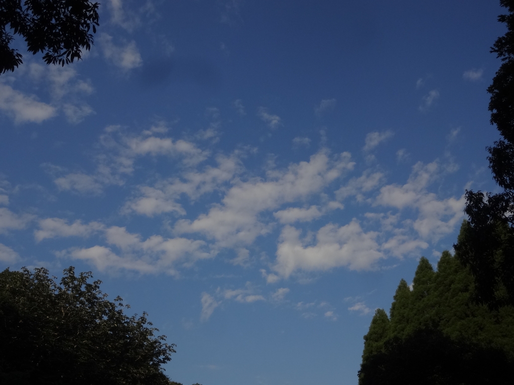 今日の昭和の森は晴れています。 ここのところ、 「晴れています」と書きたい気持ちがたまっていました。 早朝は気温が下がったので、朝露が盛大でした。 とても気持ちのいい爽やかな朝です。 夏と秋の入り混じった青空です。 午後には少し暑くなりそうですが、 昭和の森で過ごせば快適です。