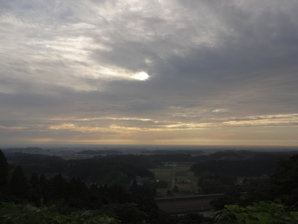 今日の昭和の森は晴れています。 暑くなってきました。 雲が多いです。 展望台から望む太平洋上空には、 いろんな層の雲が浮かんでいました。 暖色から寒色、複雑な空模様でした。 九十九里平野には、靄がかかっていました。