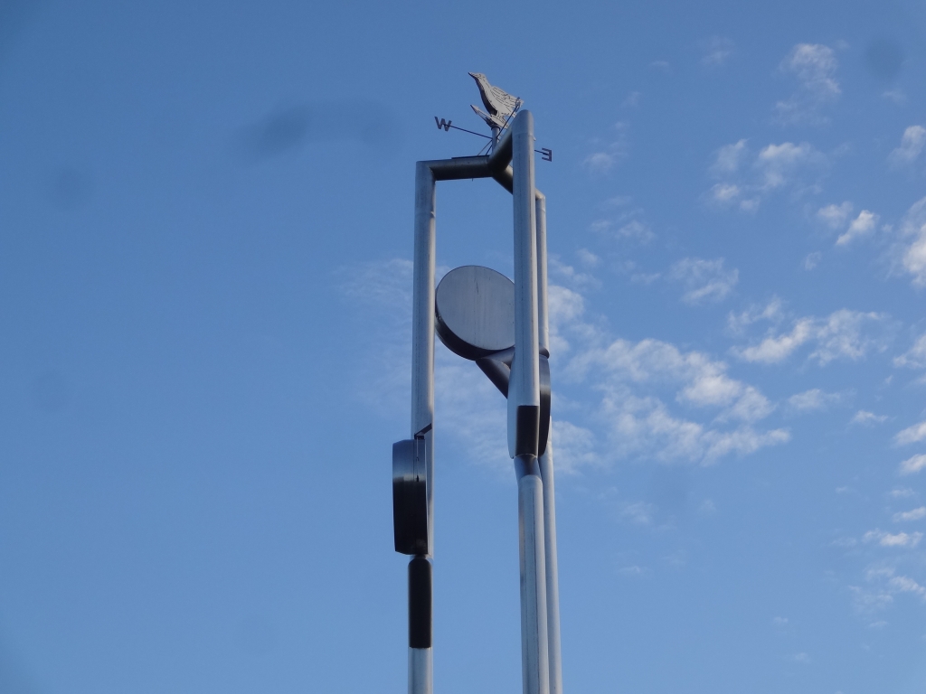 今日の昭和の森は晴れています。 早朝は快晴でした。そしてまだ青空がキープできています。 近頃にしては珍しい青天です。 しかし、蒸し暑いです。 売店近くの時計塔です。 ここは昭和の森の「へそ」とも言える場所です。 第1入口、第2入口、そして展望台から森林方面への接続点です。 その接続点のシンボルとなるのがこの時計塔です。 どの方向を目指してか、3方向にそれぞれ時計がかかっています。 しかし展望台から帰ってくる時に見える時計が無いのが残念です。