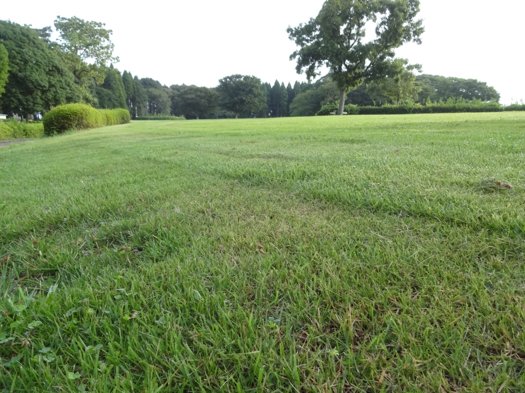 今日の昭和の森は曇っています。 時折薄日が射す、近頃にしては明るい日です。 蒸し暑いです。 太陽の広場の芝刈りが行われたようです。 今週末の花火大会を前にして粋な計らいです。 それとも、管理計画通り?