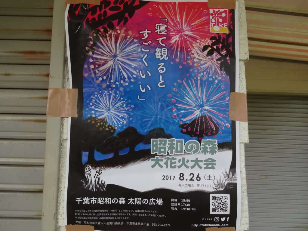 今朝の昭和の森は晴れています。 しかし天気予報では、これから崩れてきそうです。 本日8月26日は、昭和の森 大花火大会。 太陽の広場で観覧できます。 「寝て観るとすごくいい」とは、いいキャッチコピーを考えたもんです。 実際、芝生の上に寝転んでみると極楽です。 花火大会の前には盆踊りや出し物もあるようです。 駐車場は混雑するので、近隣の方は徒歩で来園するのが良いでしょう。 今のところ、夕方は「弱雨」の予報なのですが、 なんとか持ってほしいで...